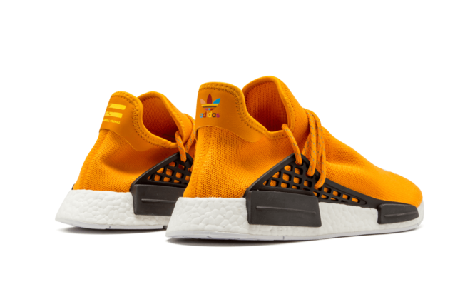Among the very first colorways of the highly coveted Pharrell NMD Human Race, this 2016 version boasts a bold and eye-catching design. This vibrant edition features "Hue" embroidered across the top of the left shoe and "Man" on the right, adding a distinctive touch to the bold orange Primeknit upper. Perfect for those who want to make a statement, this colorway combines style, comfort, and the iconic Pharrell touch.