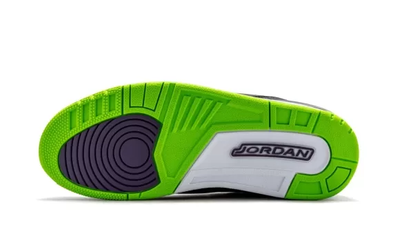 Supplied by a premier sneaker marketplace dealing with unworn, already sold out, in demand rarities. Each product is rigorously inspected by experienced experts guaranteeing authenticity. Due to its similarities in colour to the famous foe of Batman, this Air Jordan 3 in black, green, and purple quickly picked up the “Joker” nic... Read more Supplied by a premier sneaker marketplace dealing with unworn, already sold out, in demand rarities. Each product is rigorously inspected by experienced experts guaranteeing authenticity. Due to its similarities in colour to the famous foe of Batman, this Air Jordan 3 in black, green, and purple quickly picked up the “Joker” nickname. Featuring a pebbled leather texture, an ankle length, a brand embossed tongue, a lace-up front fastening, a round toe and a flat rubber sole. Read less