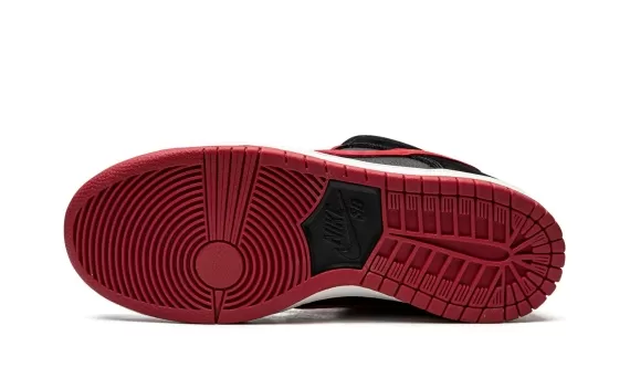 Drawing inspiration from the Air Jordan 1's original color scheme, Nike released a 2014 colorway inspired by Michael Jordan himself. The Dunk Low Pro SB 'Jpack' features black pebbled leather with black suede overlays, and University Red accents on the perforated toe box, Swoosh, and lining. The sneaker also boasts an extra padded and branded tongue for a more adaptive fit and additional branding on the heel.