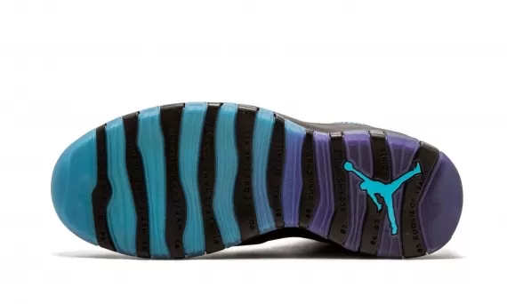 Black/gamma blue/fierce purple leather Air Jordan Retro 10 "Shanghai" sneakers from jordan featuring round toe, flat rubber sole, front lace-up fastening, branded insole and ankle length. These styles are supplied by a premium sneaker marketplace. Stocking only the most sought-after footwear, they source and curate some of the... Read more
