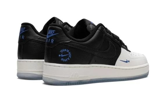 The Nike Air Force 1 Low ‘TINAJ’ is billed as the first ‘IRL sneaker from .SWOOSH,’ Nike’s web3-enabled platform. The low-top sports a color-blocked upper, highlighted by smooth white leather along the forefoot and black pebbled leather throughout the midfoot and heel. The two-tone design is punctuated by vibrant blue accents, which include an embroidered mini-Swoosh on the lateral forefoot and a heel graphic that features the phrase ‘This Is Not a JPEG’ encircling another mini-Swoosh. Underfoot, a translucent rubber outsole provides durable traction.