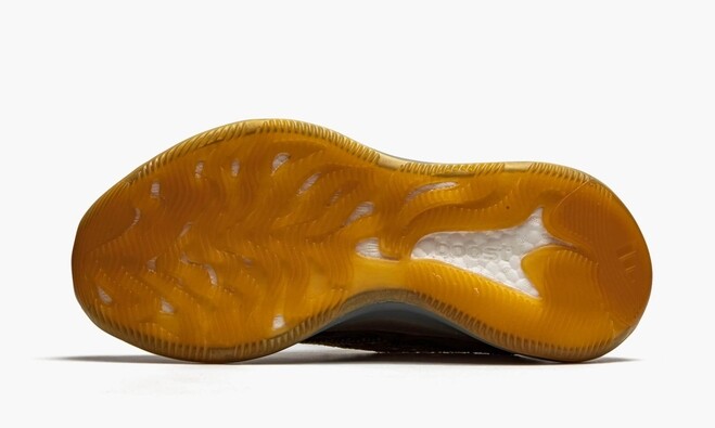 Primeknit Upper: Earth tone palette with mustard yellow monofilament side stripes.